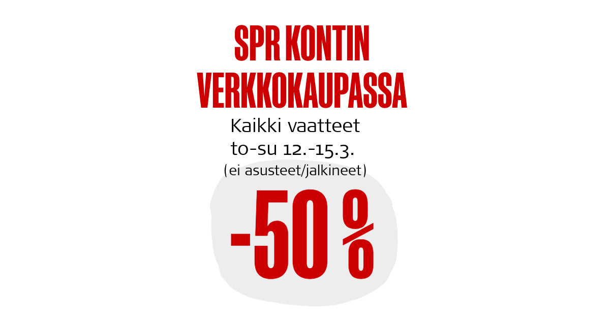 Kontin verkkokaupassa on vaateale to-su 12.-15.3. Kaikki naisten ja miesten secondhand-vaatteet myydään puoleen hintaan. Alennus ei koske jalkineita eikä asusteita.