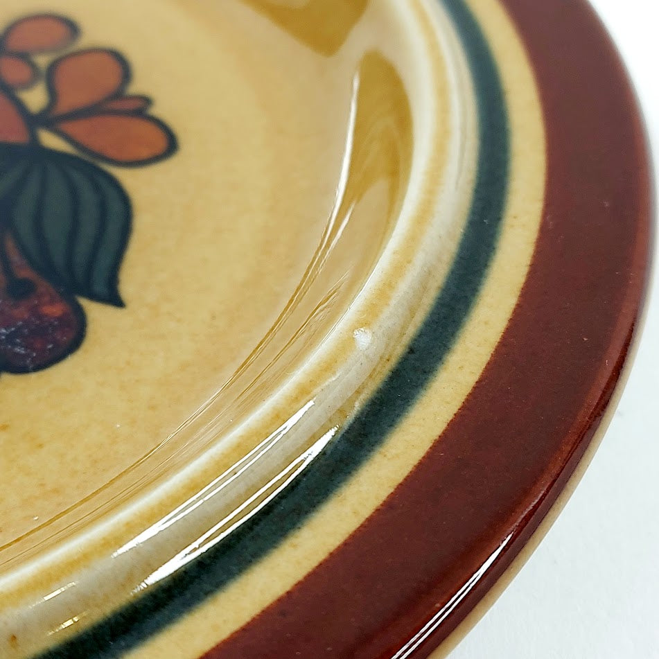 Toisessa lautasessa pieni lohkeama lasitteessa (ks. kuva)