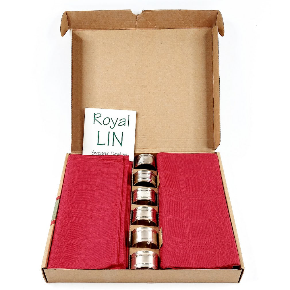 6 lautasliinaa, 6 servettirengasta