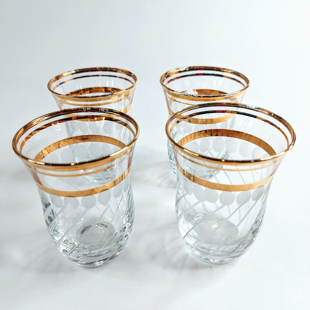 Astiasto sisältää 4 lasista teekuppia, 4 tassia, 4 teelusikkaa, teekannun ja tarjottimen